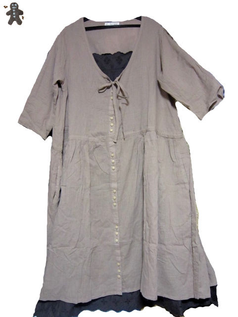 【エヘカ シワ加工ドットエプロンワンピ モカ ¥6195→¥3087(半額)】