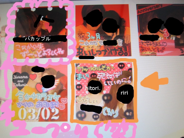 それよりこのページのプリクラはこいつらで埋められた中、私らが鎮座させてもらったんですが、