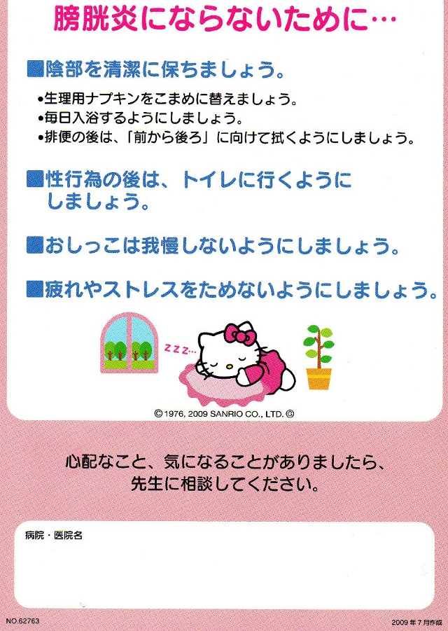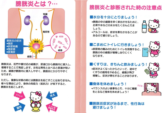 結果、膀胱炎の細菌が入ってるらしく、薬とリーフレットをもらいました。