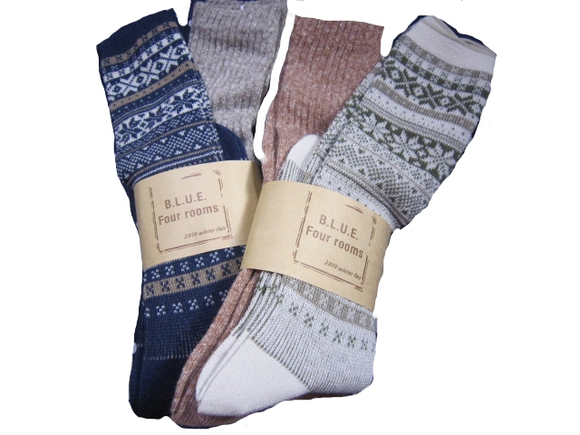 ジャガード柄ソックスと無地のネップリブソックスの2本セット。2色GETしてしまった。