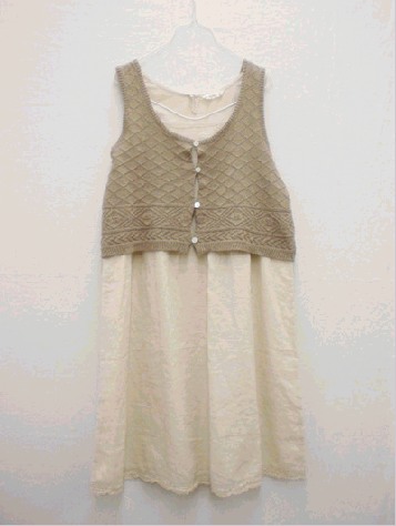 ベストと同じシリーズでドロップスリーブのニットカーデ(ピンでとめる)がありました。カーデの方はオレンジやブルーもありましたが、ベストワンピセットはベージュと茶色だけみたいです。