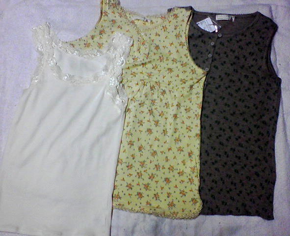 着こなしも思いつかないし、もう部屋着にでもしようか…オクに出しても売れないだろうし。。500円でなら売れるかもだけど500円になるくらいなら部屋着にするわ。それか、売れなかったら、部屋着か、ここの閲覧者に無料で新品タグ付き森ブサイクタンクトッププレゼントキャンペーンでもしようか。メッセかメール最初にくれた方に。