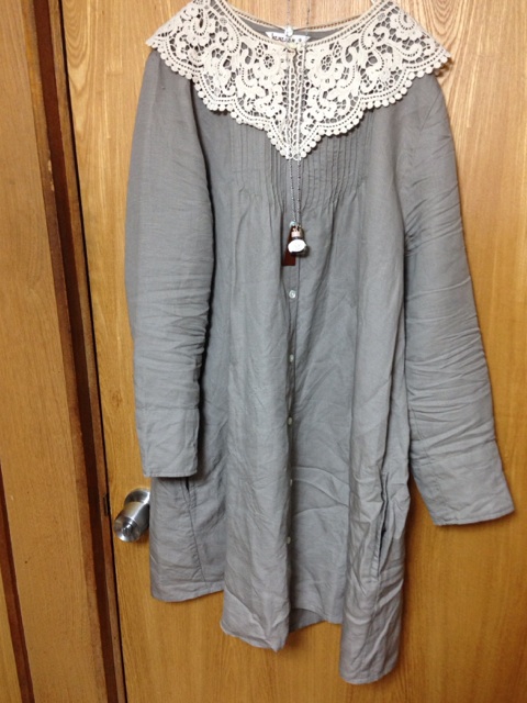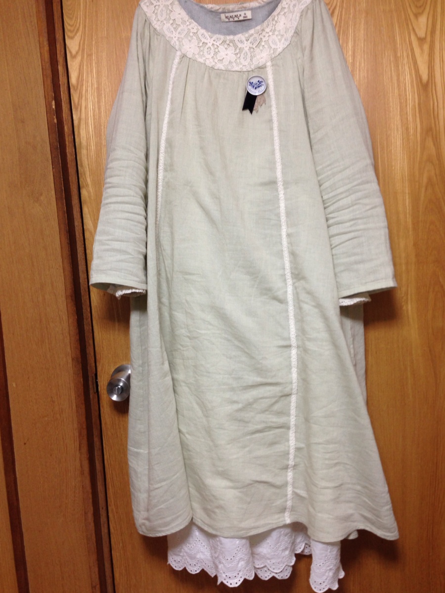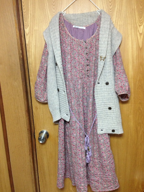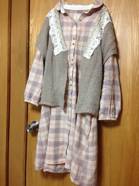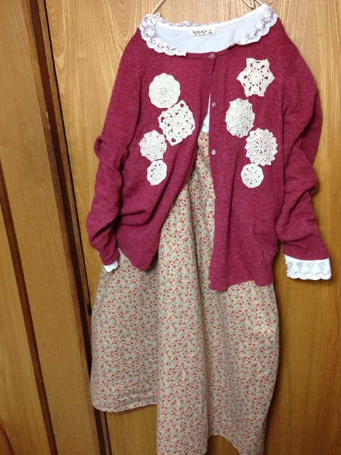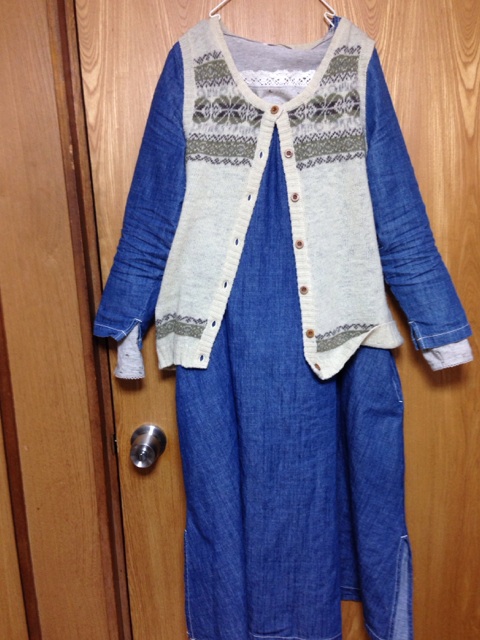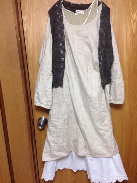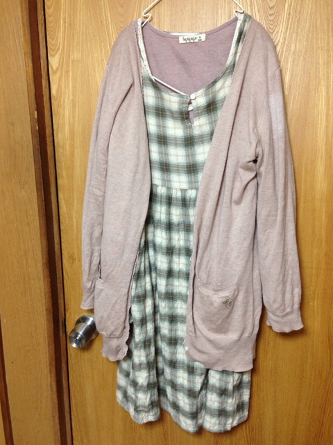 今日の服装は8月に出たリンネルコラボなんですが、カギ刺繍のカーデ羽織ってワンピの袖引っ張ったら、ブチッとか音がして、ニットカーデの後ろのギャザーの部分が破れたよwwデブ乙www
