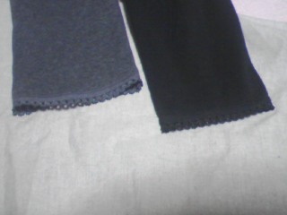 ↑無印良品:綿混ストレッチフライス/レース付きフルレングススパッツ(M)¥1050 黒とチャコールグレー