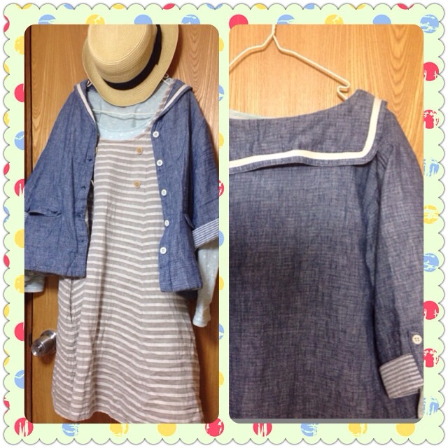 セーラーカラーのワンピ(上:オフ、レースストールを巻いている)